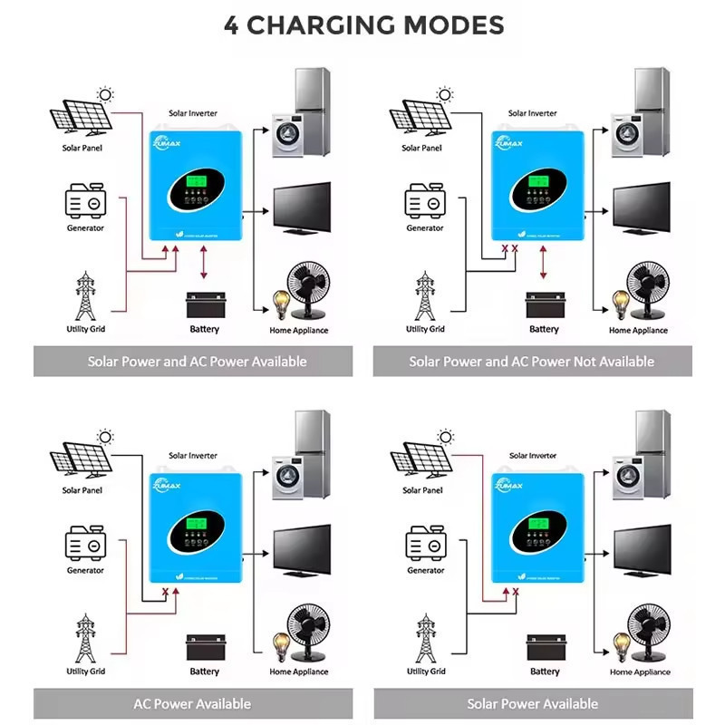 Chế độ hoạt động On-Grid / Off-Grid / Không cần ắc quy