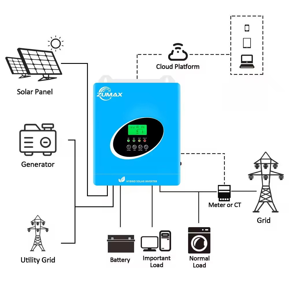 Review Biến tần năng lượng mặt trời Inverter hybrid Zumax-48V 6.6KW-500VDC-MPPT 120A-Hoạt động có hoặc không Lưu trữ