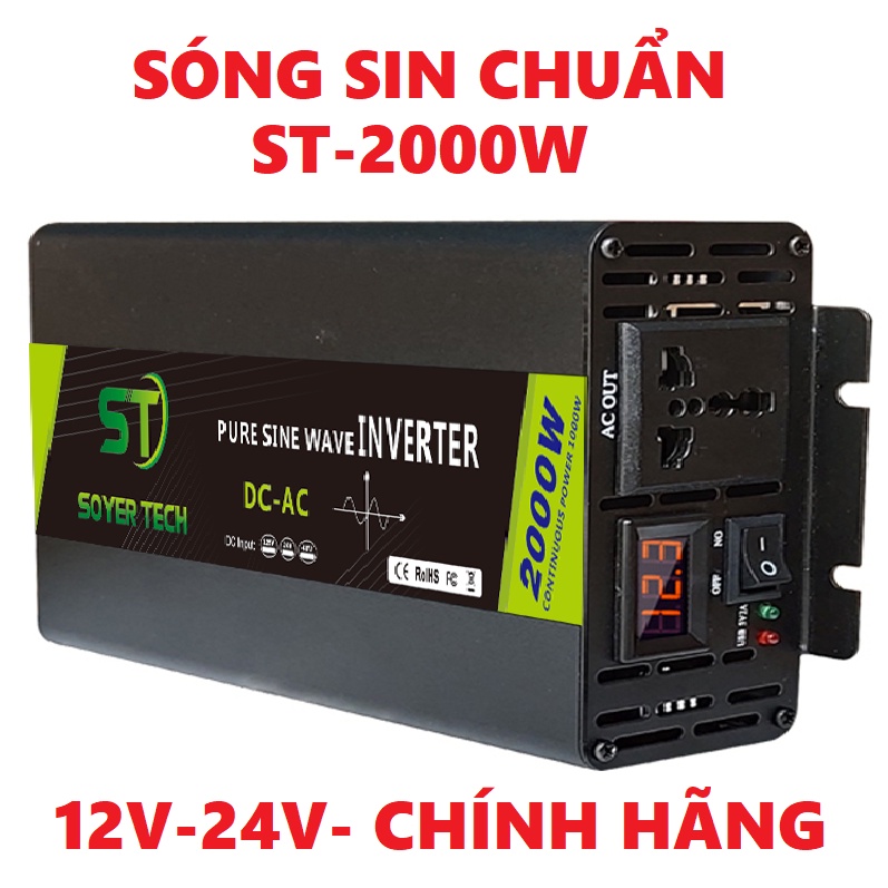 Review Bộ chuyển đổi điện Sin Chuẩn 2000W-Bộ Đổi Nguồn 12V sang 220V Sin Chuẩn -ST-2000W-SOYER TECH