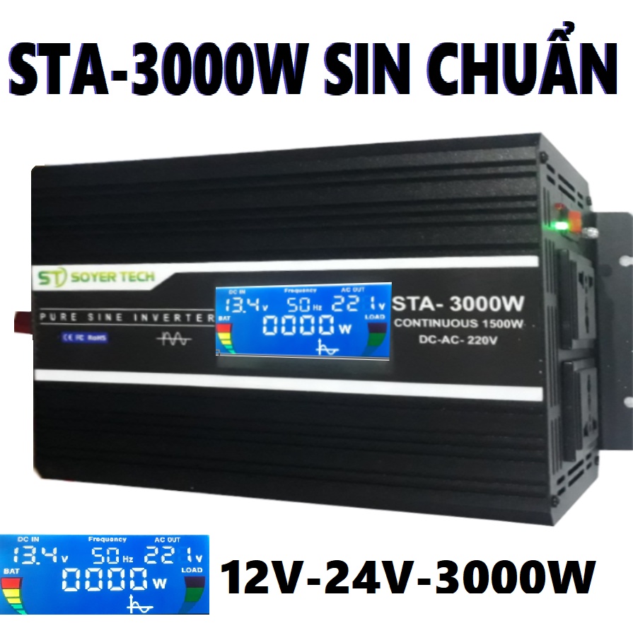 Review Bộ chuyển đổi điện Sin Chuẩn 3000W-Bộ Đổi Nguồn 12V sang 220V Sin Chuẩn -SOYER TECH-STA-3000W-SOYER TECH