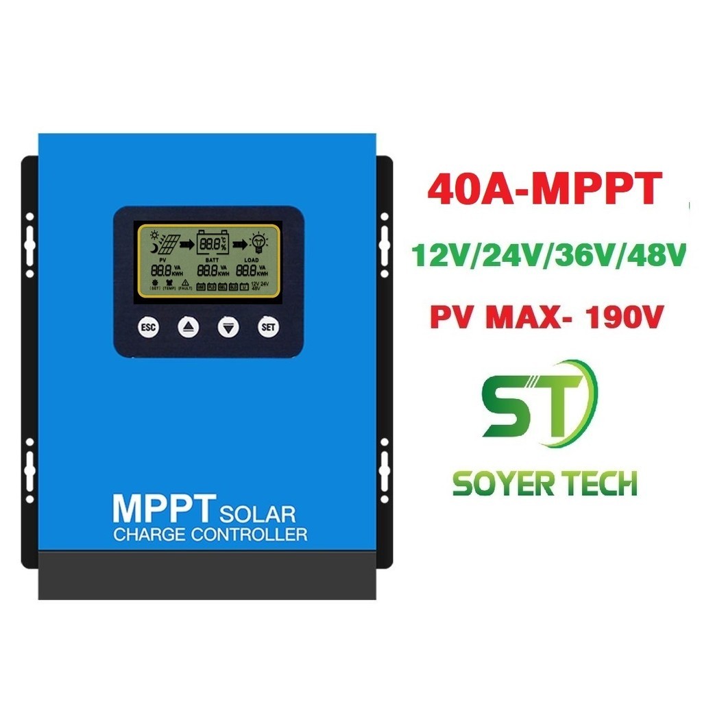 Review Bộ điều khiển năng lượng mặt trời MPPT-SOYER TECH MPPT 40A-12V-24V-36V-48VBộ điều khiển sạc tự động nhận bình
