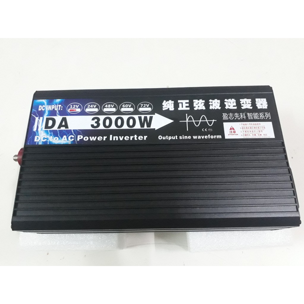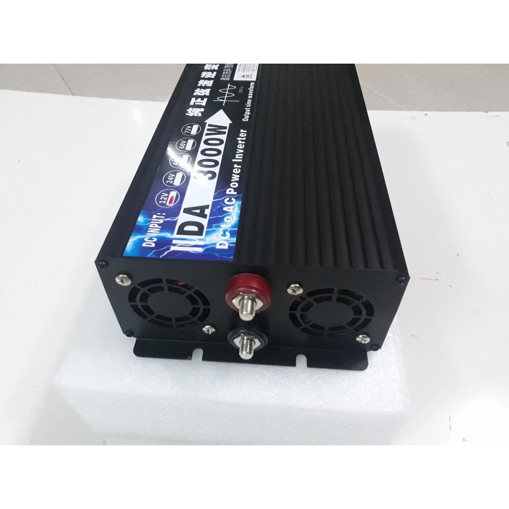 Bộ kích điện sin chuẩn 3000W là thiết bị chuyển đổi nguồn điện 12V DC từ ắc quy (xe đạp điện, xe máy điện, ô tô, hệ thống điện mặt trời) sang nguồn điện xoay chiều 220V AC sử dụng cho hầu hết các thiết bị điện dân dụng. Thiết bị sử dụng sóng sin chuẩn (pure sine wave) đảm bảo dòng điện ra ổn định và tương thích cao, giúp bảo vệ và kéo dài tuổi thọ thiết bị điện.