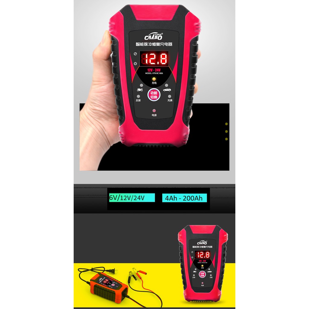 Review Bộ sạc acquy tự động nhận bình 6v,12v,24v – 4Ah đến 200Ah – Sạc ắc quy