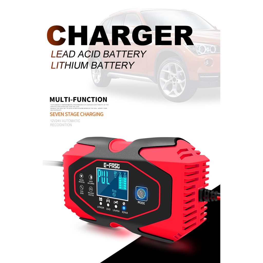 Review Bộ sạc bình ắc quy nhanh E-FAST 12V-24V kèm phục hồi bình 2Ah-150Ah- Sạc Bình Pin lithium 12.6V- 12.4V