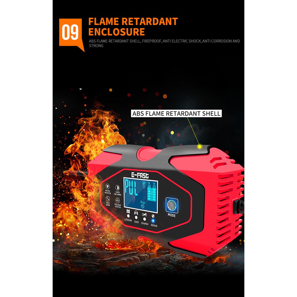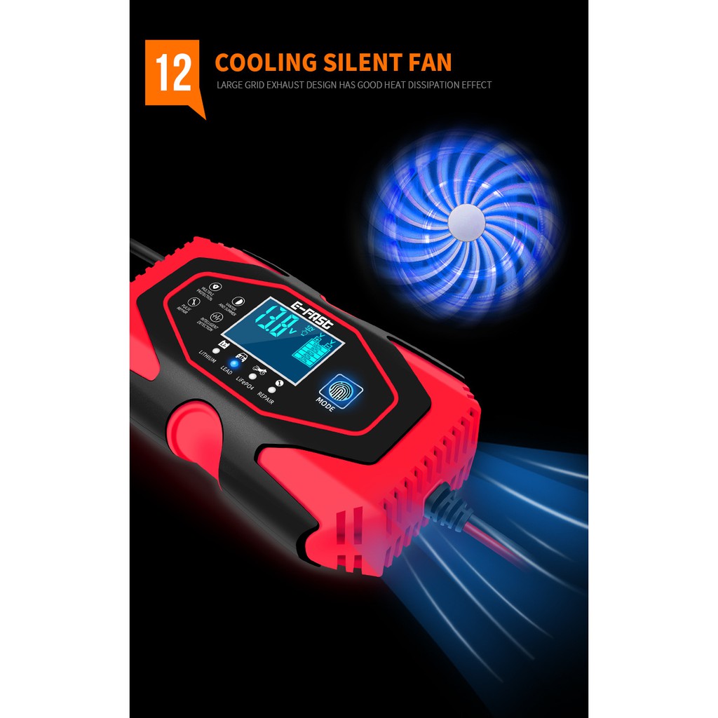 Bộ sạc E-FAST là thiết bị sạc thông minh ứng dụng công nghệ điều khiển bằng vi xử lý (CPU), hỗ trợ sạc hoàn toàn tự động với 7 giai đoạn sạc giúp phục hồi và kéo dài tuổi thọ cho các loại bình ắc quy và pin lithium. Thiết kế nhỏ gọn, tích hợp nhiều tính năng bảo vệ an toàn, phù hợp cho cả dân dụng và kỹ thuật viên chuyên nghiệp.