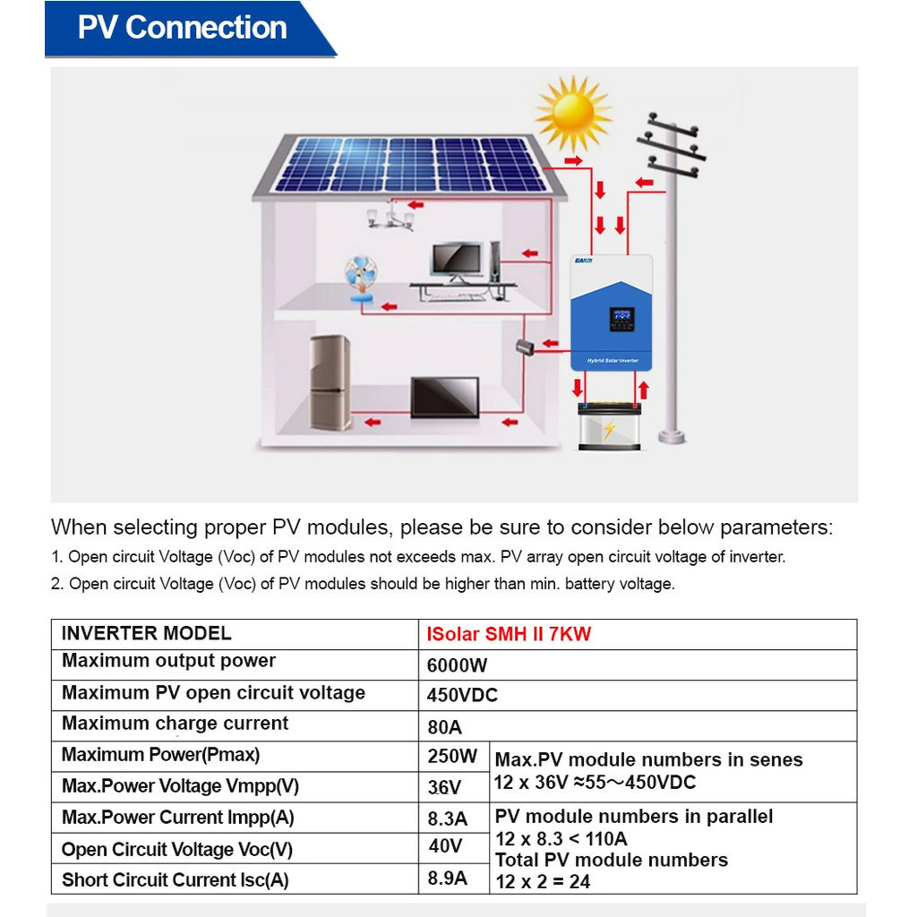 Sản phẩm hỗ trợ hoạt động ở chế độ Hybrid, Off-Grid và có thể chạy độc lập không cần ắc quy khi có ánh sáng mặt trời tốt.