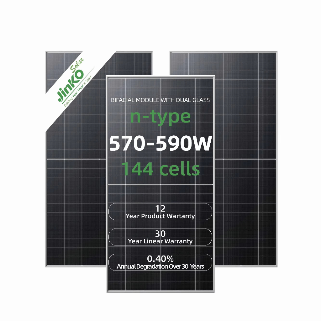 Tấm pin năng lượng mặt trời JINKO 590W Tiger Neo N-Type 72HL4-BDV là sản phẩm thuộc dòng cao cấp nhất của Tập đoàn JINKO – một trong những thương hiệu hàng đầu thế giới về sản xuất module quang điện.Với công nghệ cell N-Type, thiết kế half-cut và 2 mặt kính (bifacial), dòng sản phẩm này giúp tối ưu hiệu suất thu năng lượng, giảm tổn thất và tăng tuổi thọ.Combo 8 tấm pin – tổng công suất 4.72kW, là lựa chọn hoàn hảo cho hệ thống điện mặt trời dân dụng công suất trung bình, hệ hòa lưới 5kW, hoặc lắp đặt cho trang trại, văn phòng, cơ sở sản xuất nhỏ.