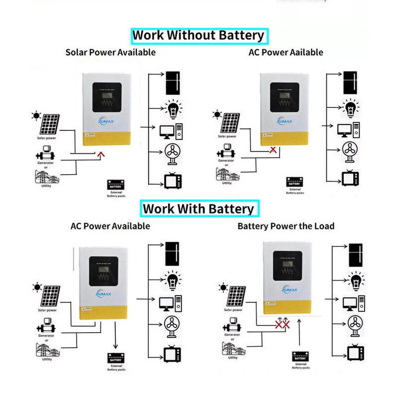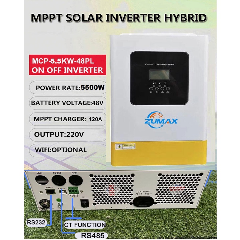 Inverter Hybrid Zumax MCP-5,5kW (Bản Nâng Cấp) là bộ biến tần đa năng, kết hợp giữa năng lượng mặt trời, điện lưới và pin lưu trữ để tối ưu hóa hiệu suất sử dụng điện. Sản phẩm hỗ trợ chức năng bám tải, lưu trữ và cài đặt dòng xả linh hoạt, giúp người dùng quản lý điện năng hiệu quả hơn.