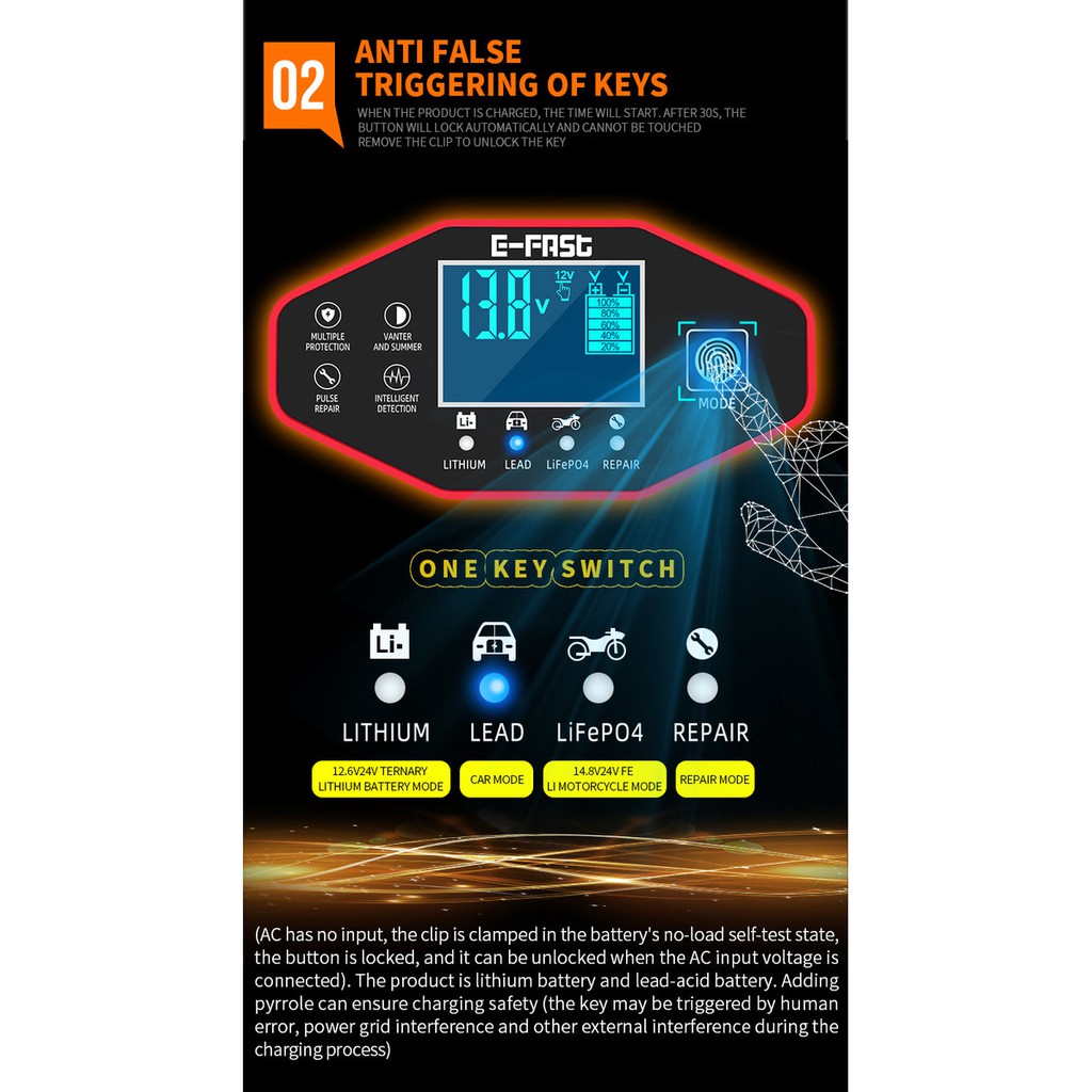 Loại pin tương thích Axit chì, GEL, AGM, Canxi, Li-ion, LiFePO4