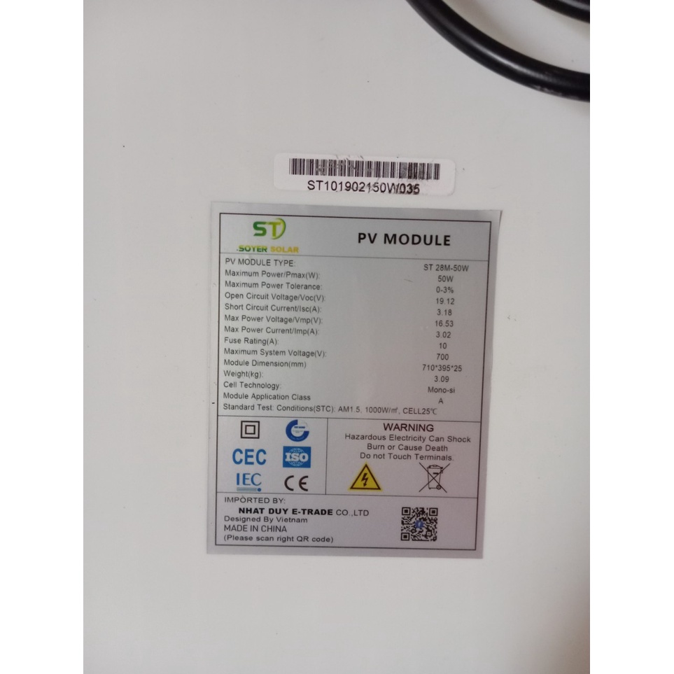 Review Tấm Pin Năng Lượng Mặt Trời Mono 50W – Hàng Chính Hãng – Bảo hành 10 năm -SOYER TECH tặng jack mc4